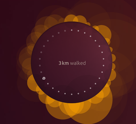 接下来看Ubuntu Phone的介绍。Home的功能是一个入口,类似于Unity的Home设计,在此界面拉动四边会激活不同的功能。主页这个圆盘有什么特殊意义在看视频的时候没有听明白,不会看有些媒体介绍说这是一个可视化的数据展示界面,于是和Android通知栏是不是一个道理就不得而知了。不过看说法是根据数据的不同会展示不同的样式,比如变色和动画效果。
