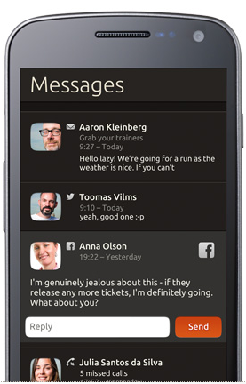 其后引来多方猜测,个人猜测可能是支持触摸的系统,所以最可能是平板电脑。今天早上一觉醒来喵了一眼订阅的消息才发现是手机,也就是期待已久的Ubuntu Phone。于是接下来引用官方的一些说法,然后进行个人吐槽。官网的介绍大致如下。