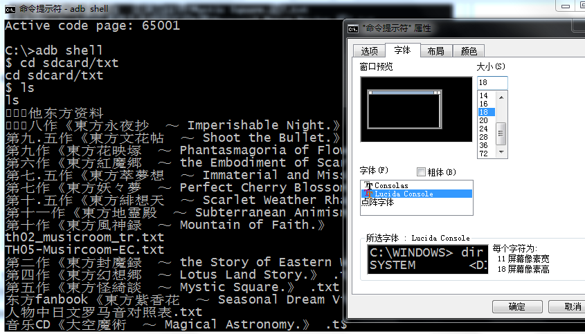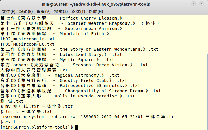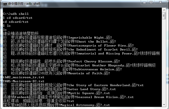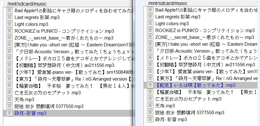 如上图,重编码之后使用adb push到sdcard的【蛇足】いろは唄【歌ってみた】.mp3。至此adb对unicode出现的问题已将完全解决。通过对ddmlib代码的分析,发现adb-server和之前自己的理解有较大的差别,当然这是之后的事情。另外,不要在再win7下随便使用chcp命令修改编码页(CodePage)。