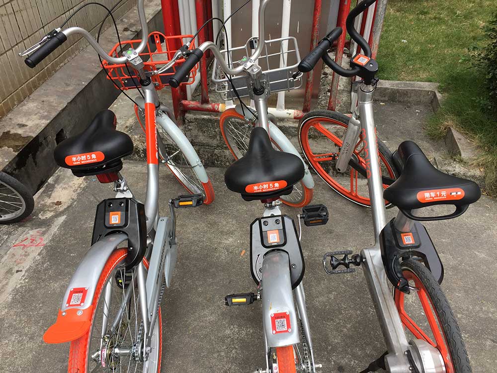 这一切的契机是十一月份觉得应该去锻炼一下,于是和朋友去凤凰山骑车。当然那时是当地租的山地车,而且车子不怎么样,但是真的非常开心。之后摩拜单车开始渐渐出现在街头巷尾。在摩拜推出lite版新版的时候,我在楼下拍了一张全家福分别是mobike lite v2,mobike lite,mobike。