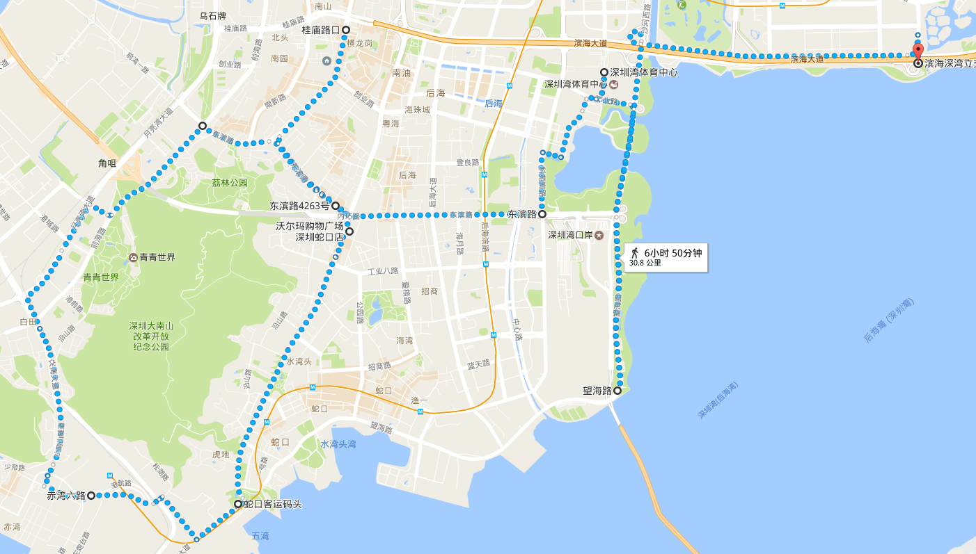 粗略算起来全程大致40公里,加上几次走错路,路上车辆和行人过多无法愉快的骑之外,从开始到结束全程大约4个小时。说实话全程也只有深圳湾骑的比较愉快,其它地方行人过多。另外就是时间有点晚,到深圳湾天都彻底黑了,在蛇口港向下路段之前计划的也没有走,而且在当地远远望去觉得有几处非常不错的地方,但是在赤湾路绕来绕去就错过了非常可惜,希望将来有机会再去吧。
