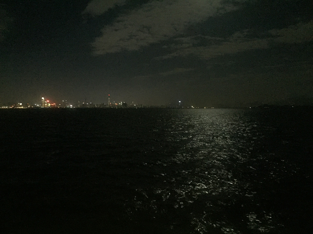 在海上栈道拍了这个照片(手机的极限在有月亮的时候就像灯泡一样…),虽然海风非常强劲但是实夜景真的非常美。和之前不同的是观光栈道开始不允许走自行车,但是在外围竟然多出一条自行车道,夜幕中非常的漂亮。
