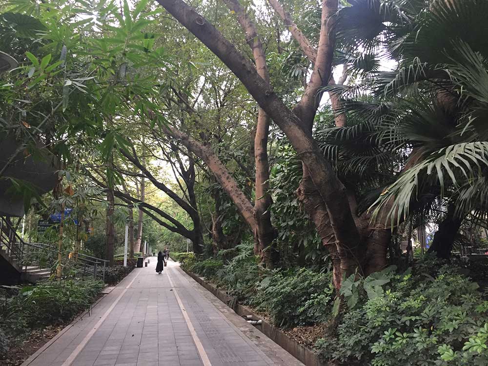 在大新地铁站找了辆车一路骑到深圳大学,穿过深大北门上深南大道,经沙河西路进入白石路。白石路这个路段行人非常多,但是过了天虹之后路面非常开阔并且有两侧都有非常不错的自行车道。