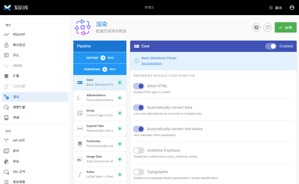 说实话这个 wiki.js 的功能确实够少(笑),不过这也正好符合我的使用习惯。那就是简洁并且功能足够的导航,搜索,以及最关键的页面展示。