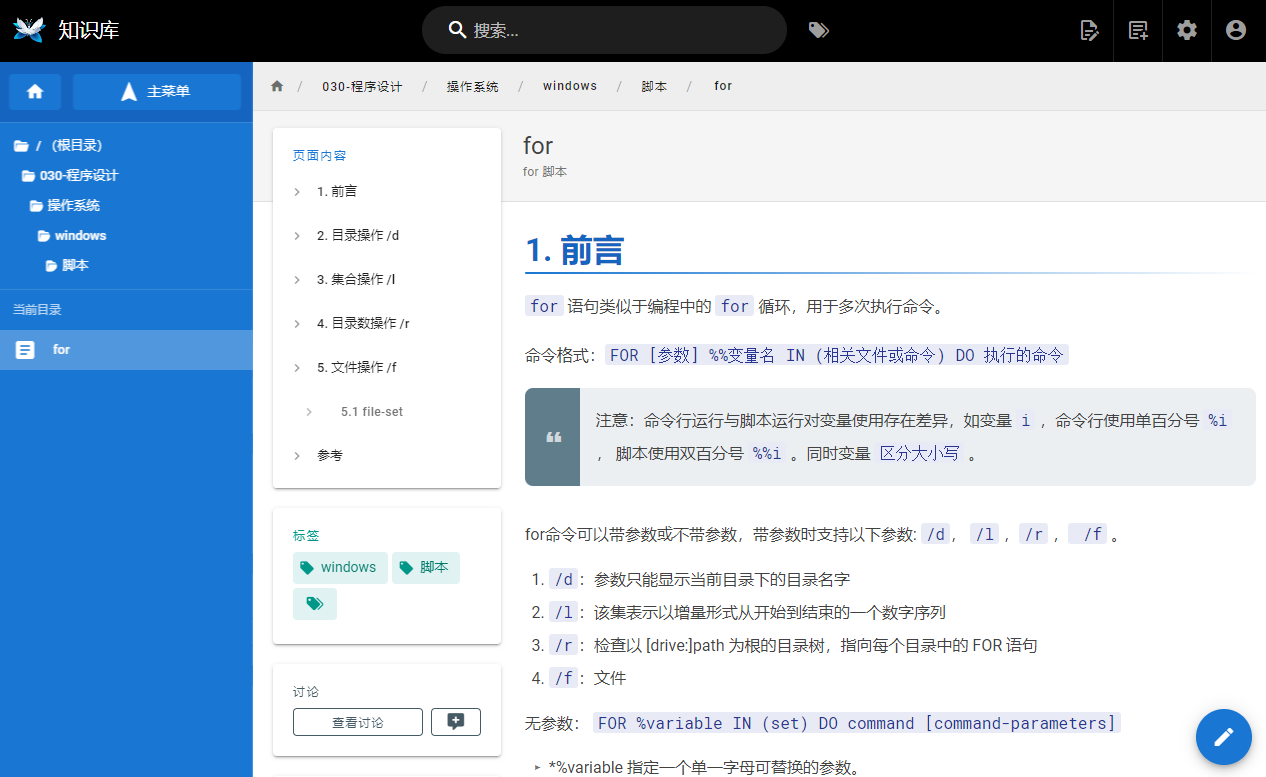 我认为这个虚拟目录的设计非常的灵活,因为文本就是存储在数据库中的,维护一个目录关系也没有意义。但是毕竟虚拟目录和真实目录是存在区别的,即不能存在空目录。所以在书写的时候必须存在一个类型于 index.html 的目录默认文件,在转换到 wiki.js 系统后当作当前目录节点的默认文件。