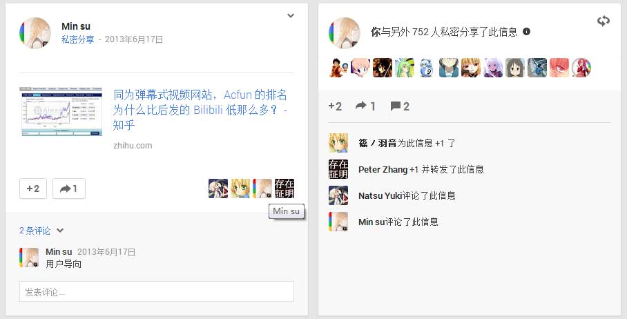 另外,Google+的一种翻页方式是什么?J键和K键,J键向下滚动,K键向上滚动… …不知道你想到了什么,对那就是vi的快捷键… …这种浓浓的开发者风格是怎么回事?另外就是Google+首页的信息流改成了卡片之后,由于卡片具有良好的内容整合性,于是… ..他们把几乎所有消息都放在了信息流中,不管是完善个人信息提示、生日提示、好友推荐等等,全部都放到信息流中。毕竟我不是美术和设计出身,也不能妄加评论这个些,但是我觉得这个真的不混乱吗?用户不想看时看到了,想看时又去哪里找?