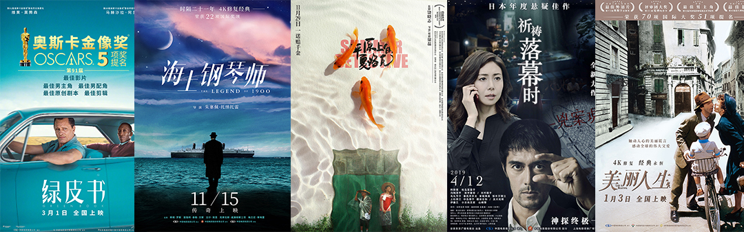 上述影片依次是《绿皮书》、《海上钢琴师》、《平原上的夏洛克》、《祈祷落幕时》、《美丽人生》