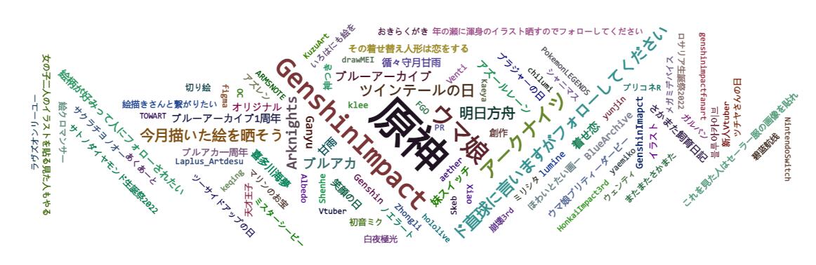 21年的新番动画在几个社区依旧是那些吵吵嚷嚷的声音,什么德不配位,摆烂。什么赛马娘不可能是霸权,并最终破防的之类的。说到赛马娘在手游开始运营就能感觉到其火热程度,在第二季开播后我关注的很多画师都有相关创作,其中有些质量高的惊人甚至让我怀疑是不是官方。在22年的元旦前后我做了一个画师TAG收集工具,在跑了一星期后发现赛马娘相关遥遥领先。我分析后在删除大量赛马相关信息后才获得正常的二次创作TAG,也就是在原神年前的大更新才使得赛马娘总体创作被超越。当然这只有在画师主动标注的TAG才会被收录,而更多的是无TAG信息。于是我开始思考给关键词自动打TAG的方式进行更加精确的统计。