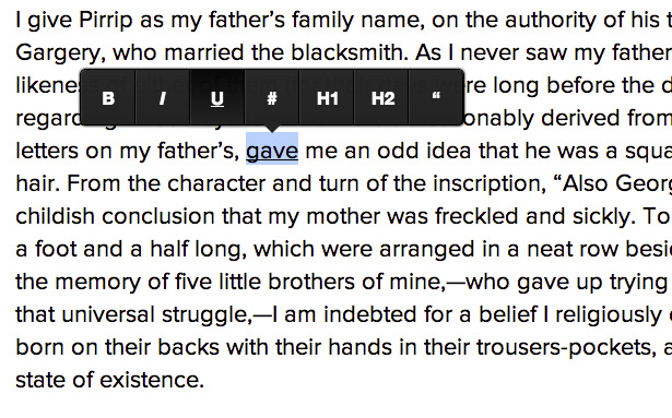 但是论好感我更喜欢MediumEditor,毕竟我对medium这个网站有非常深刻的印象。不过话又说回来了很多时候技术只是一个选择条件,因为要考虑系统的定位以及用户的定位,medium这种在风格更加2C更加互联网化。