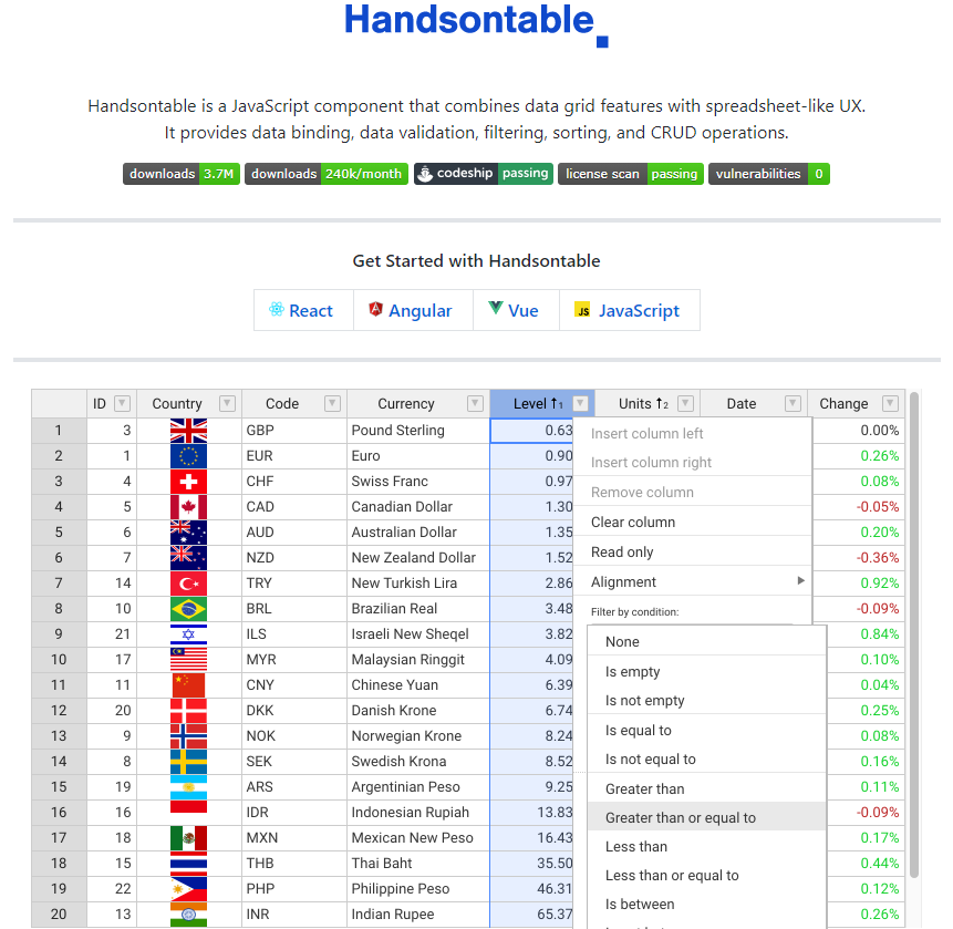 Web端的表格处理首推神级的 Handsontable,对我这样的前端出击爱好者当我看到浏览器里能做出类似于 Excel 的东西我是相当吃惊的。最开始看到Google有这种东西还可以接受,觉得这种大厂有些黑科技可以理解。直到我发现 Handsontable 这种开源项目,看到这完全的纯 JS 实现给我带来了巨大的冲击。