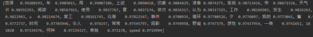 计算结果如下,这篇文章里与“笔记”这个词“距离”相近的词有如下几个