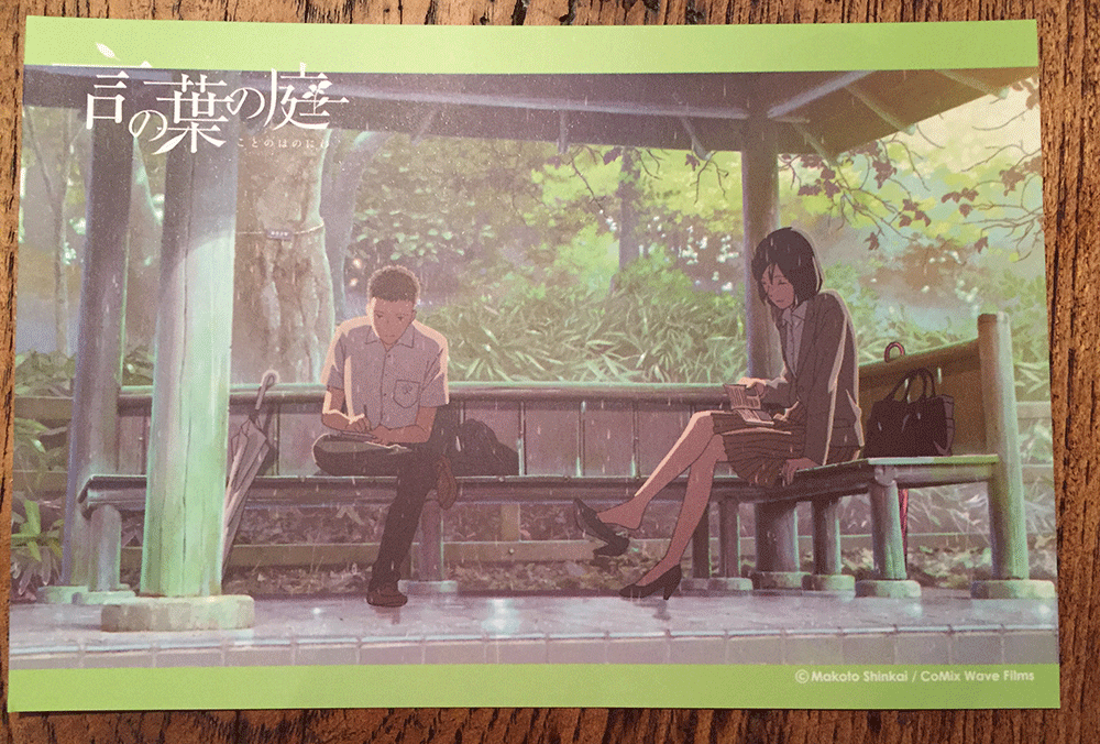 稍微一不留神几周就这样过去了,回想起当时看这次展览不知道为什么会有大热天从南山跑到福田的动力。《言叶之庭》也是在看展览的前一天晚上才看的,我记得看的时候窗外还意外的下了一场雨。